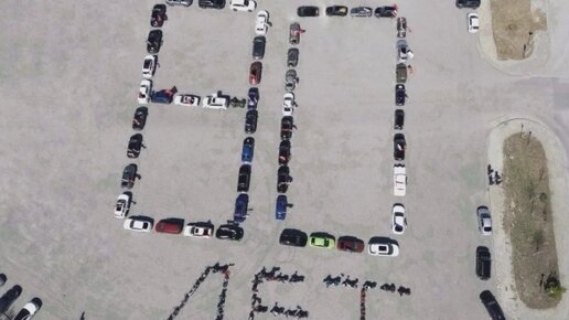 В Ханты-Мансийске мотоциклы и машины выстроились в фигуру «80 лет» Победы
