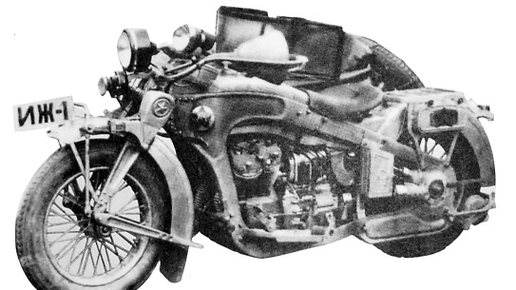 1) ИЖ-1. (1928-1929) Мотоцикл - Колосс "ИЖ-1" с двухцилиндровым 4-х тактным V-образным двигателем рабочим объемом 1200 куб. См. И максимальной мощностью 24 л. С. Для своего времени это был чрезвычайно оригинальный и передовой конструкции...