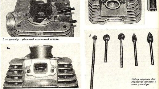 Мы продолжаем рассказ о подготовке к соревнованиям по картингу в классе «Союзный» 125-кубового двигателя дорожного мотоцикла «Минск». Доводку серийного цилиндра начинают с удаления перемычки в нижней части гильзы и увеличения размера перепускного окна (см. фото 1). После этой операции диаметр нижней части гильзы обычно несколько увеличивается. Поэтому внутренний размер гильзы цилиндра по всей ее длине контролируют нутромером. Желательно, чтобы эллипсность цилиндра в верхней зоне (до уровня выпускного окна) не превышала 0,02 мм...