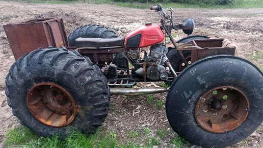 Привет. А мне вот интересно, есть ли среди Вас поклонники мототехники? Если да, тогда эта публикация для Вас! В своем посте хочу поведать Вам о самодельном мотоцикле, собранном народным энтузиастом из Пожвы Пермского края. Это яркий пример того, как из всякого ненужного хлама и металлолома, можно собрать весьма полезную вещь. Пожалуй первое, что бросается в глаза, так это колёса ободрыши, которые указывают на повышенную проходимость самодельного мотоцикла. Наперед мастер поставил резину от ЗИЛа 131, а назад - ободрыши ОИ-25...