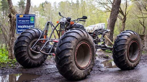 Всем привет, фотоотчет о ходовых испытаниях и немного технической части. Изначально был мотоцикл Днепр с коляской, использовался он для перемещения по садоводству и ничего не предвещало беды, но вдруг хозяину стало скучно. Коротая время в гараже он решил сделать из мотоцикла квадроцикл. До первого серьезного выезда на бездорожье он пережил несколько вариантов модификаций от простого заднеприводного, до того монстра, что есть сейчас. Движок от днепра, 2х цилиндровый оппозитный с воздушным охлаждением...