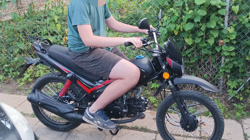 Всем доброго времени суток! Выдалась свободная минутка и хочу вам рассказать как сложилась судьба мопедки TRICKLER! С ним все хорошо)), зимует в гараже. Первым делом хочу подтвердить свои рассуждения в прошлых статьях по поводу посадки. Для высокого пилота он действительно удобен, посадка похожа на человеческую, а не колени к ушам)). В подтверждение прикладываю фото именинника и его первую посадку. Обратите внимание на колени и руки. Посадка вполне удобная для езды по асфальту и в лесу. При полном вывороте руля он не упирается в ногу...