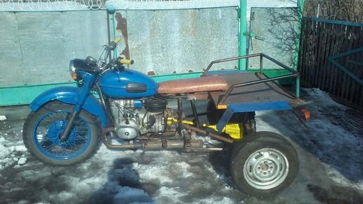 Из старенького мотоцикла можно сделать отличный мощный грузовой трицикл, на котором можно перевозить грузы и буксировать легковой автомобильный прицеп. Для постройки трёхколёсника идеально подойдёт мотоцикл тяжёлого класса Днепр или Урал. Этот вариант представленный на фото сделан из мотоцикла Урал. Конструкция мотоцикла была изменена следующим образом: заднее колесо демонтировали и установили задний мост и колёса от автомобиля ВАЗ...
