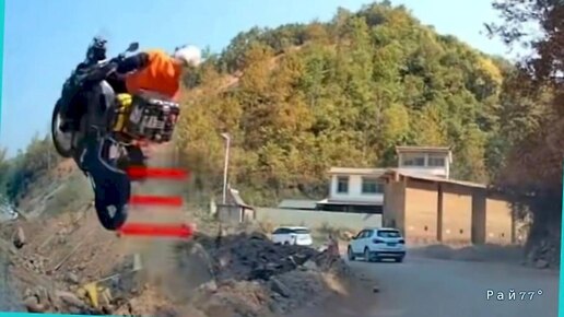 На глазах у участника дорожного движения, прокладывающего маршрут на своей легковушке по скалистой местности в Поднебесной, мотоциклистка неожиданно покинула магистраль. Автомобильный видеорегистратор запечатлел полёт мотоциклистки, которая не справилась с управлением своего «железного коня»...