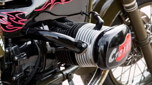 Завод "Поршень", который производит резервуарное оборудование, а также факультативно занимается легкой авиацией и русскими мотоциклами, наконец показал что он уже почти готов малосерийно производить и продавать. Мотоцикл именуется "Волк-2" и пока представляет собой (за вычетом движка) перелопаченное днепровское шасси (украинцы, поперхнитесь горилкой!) с оригинальным редуктором, полноценным карданным валом и днепрячей же коробкой, переделанной под пятиступ и электростартер. И оригинальным двухдисковым сцеплом (фрикционные диски - от ВАЗа-"классики") А теперь о главном, о самом моторе...
