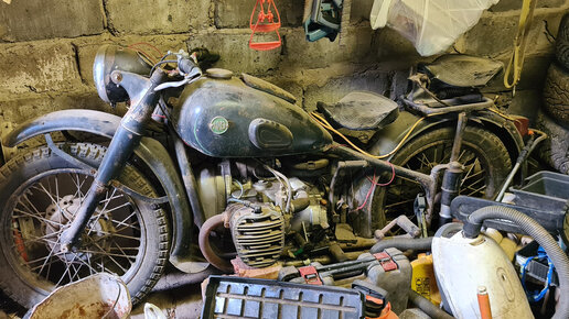 Мотоциклу 64 года. Попытка завести после 10 лет простоя в гараже. Мой первый мотоцикл.