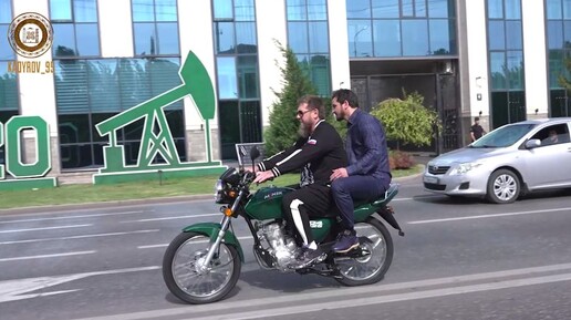 Кадыров прокатился на белорусском мотоцикле по столице Чечни