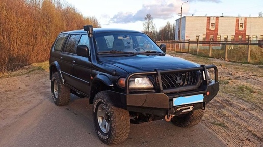 Летом 2023 года я решил ещё поэкспериментировать с внедорожниками и приобрёл себе паджеро спорт 1 поколения, специально подготовленный для бездорожья. Этот двадцатилетний старичок выглядел очень внушительно. Огромная лебёдка, якорь для лебёдки(бонусом лежал в багажнике), шноркель, 33-грязевые колёса, дополнительные проставки 60 мм, фаркоп. Крылья под огромные колёса стояли из стеклопластика. Выглядело неплохо. Новая рама. Все изменения занесены в ПТС. Проблем при регистрации не возникло никаких...