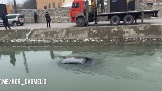 Автомобиль «Лада Приора» упал в канал в Махачкале