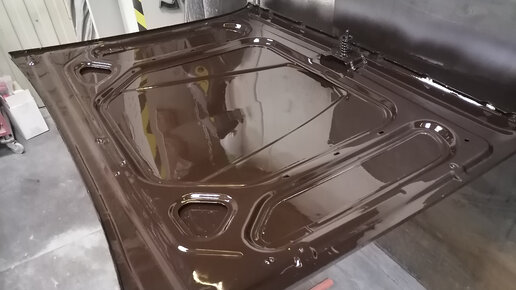 ... Продолжение. Двигаюсь черепашьим шагом к финалу покрасочных работ. За прошедший месяц только и успел, что выкрасить внутрянку навесного. Началось все с неприятного - на открашенной крышке багажника в местах над шовным герметиком появились мелкие пузырьки воздуха. Это выходил растворитель при застывании шовника - очевидно, часа на сушку не хватило и нужно увеличивать время между нанесением шовного герметика и окрашиванием. Ну а крышку заматовал и дунул еще одним слоем краски. Следующий на очереди - капот...