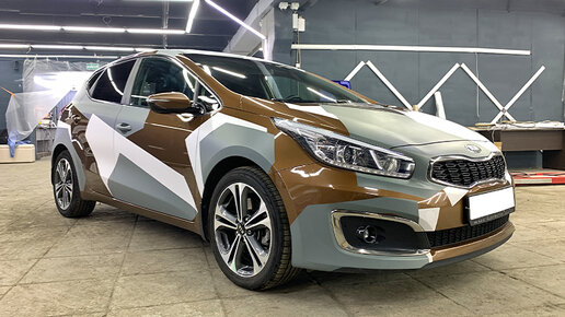 К нам обратилась клиентка на автомобиле Kia Ceed с целью восстановления наклеек в виде камуфляжа. Нами была подобрана серая и белая матовые плёнки в соответствие с тем, что уже было наклеено ранее. На машине были оклеены следующие детали: передняя правая дверь, дверь багажника, частично переклеены детали на крыше, капоте и заднем бампере, также были проведены мелкие восстановительные работы по наклейкам в виде их подрезки...