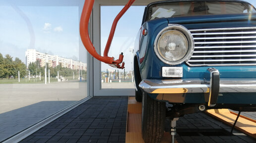 ВАЗ 2101. Это всем знакомый, советский автомобиль, прообразом которого послужил FIAT 124. В конечном счёте, машина целиком и полностью производилась на территории СССР, но в начале производства "копейка" имела множество деталей из Италии. Многими элементами автомобили первых партий отличались от своих будущих, крупносерийных моделей. Автомобиль на фото, один из самых первых ВАЗ 2101 в истории. Да, это не самая первая машина, но она полностью её повторяет. И даже конвейерный "краб" над ней такой же, какой спускал оригинальную "копейку" на землю...