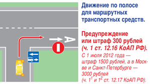 В этой части мы рассмотрим штрафы нарушения ПДД при движении по односторонней дороге, движении по трамвайным путям и о движении по полосе для маршрутных транспортных средств. Ситуация 6 Ничего спорного, осуществлен выезд на полосу для маршрутных транспортных средств в нарушение знака 3.1 и п.18.2 Правил дорожного движения: 18.2. На дорогах с полосой для маршрутных транспортных средств, обозначенных знаками 5.11, 5.13.1, 5.13.2, 5.14, запрещаются движение и остановка других транспортных средств на этой полосе...