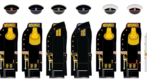 Общие указания. парадную: зимнюю - № 1; летнюю - №№ 2 и 3. строевую-парадную: зимнюю № 4; летнюю - №№ 5 и 6. обыкновенную: зимнюю - № 7; летнюю - №№ 8 и 9. строевую-обыкновенную: зимнюю - № 10; летнею №№ 11 и 12. служебную: зимнюю - № 13; летнею №№ 14 и 15. строевую-служебную: зимнюю и летнюю - №№ 16 и 17; летнюю № 18. визитную: зимнюю - № 19. повседневную зимнюю и летнюю вне строя: №№ 20, 21, 22 (и 23 - для Гвардейского экипажа). Случаи ношения указанных форм перечислены в отделе II. Подразделение...