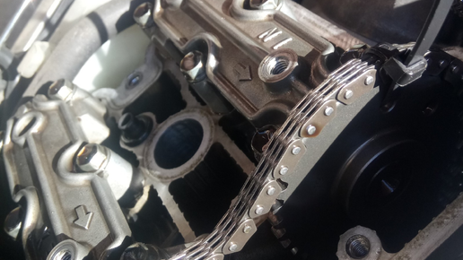 Цепь как сопли. Фиксируем цепь стяжками. Снимаем натяжитель грм..