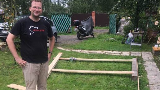 Нужно было возиться с автомобилем, а гараже нет. Времени на капитальную постройку не было, денежное дерево не выросло. Пришлось колхозить и фантазировать. Этот навес стоит уже третий год, ураганные осенние ветры его не смели. Самое спорное решение - обрезки бруса вместо нормального фундамента. С другой стороны - когда решим соорудить что-то более капитальное, можно будет поменять периметр сооружения. Сейчас, например, мне кажется, что правильнее сделать навес вдвое шире, на пару машин. Не проблема - фундамента нет и можно будет удвоить ширину сооружения...