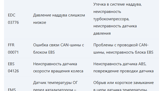 Коды ошибок MAN TGS - это диагностические коды неисправностей (DTC), которые генерируются электронными системами управления грузовика для указания на конкретные проблемы. Расшифровка этих кодов помогает определить причину неисправности и выбрать правильный способ ремонта. Поскольку существует огромное количество кодов ошибок, охватывающих различные системы MAN TGS (двигатель, трансмиссия, тормозная система, электрооборудование и т. д.), я не могу предоставить полный список здесь...