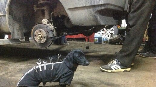 Приехал я недавно в сервис в Подмосковье, обычный такой сервис, не премиум класса. Заехал на замену стойте стабилизатора. Ну все как обычно, договорились о цене загоняю автомобиль. Решил поехать по своим делам, и приехал в сервис пораньше. Увидел там следующую картину, собака помогает механику, был немного в шоке, улыбка просто не слезала с моего лица. Небольшая Такса по кличке Гайка бегает по автосервису, с ключами на перевес и помогает механикам, принося им подходящие ключи. Такса, которая работает...