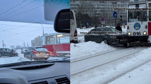 Две легковушки столкнулись с трамваями в Набережных Челнах