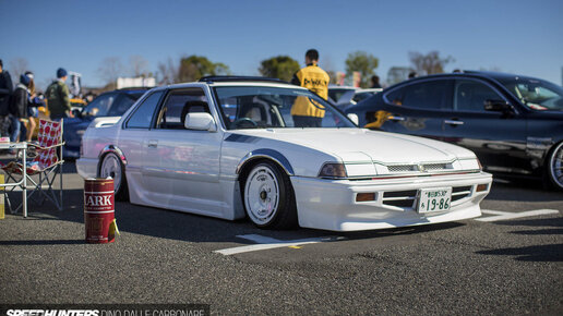 Было много любопытных штук, выпущенных в Японии в 80-е годы. Люди наслаждались плодами бурнорастущей экономики, а европейский стиль внезапно стал популярен. Как и сотрудничество с европейскими компаниями в моде, автопроме, и всем, что между ними. Например Nissan поручил дизайн-центру Zagato нарисовать облик ограниченной серии машин Autech. Они так же сотрудничали с парижским лейблом мужской моды Renoma при создании лимитированной версии N12 Nissan Pulsar Langley. И дух тех времен — это то, что владелец белоснежной Honda Prelude I 86 года пытался передать...