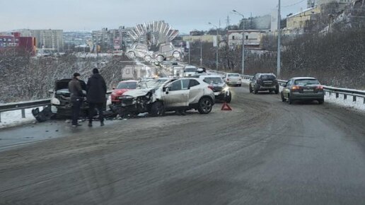 Утром около 10:45 в районе дома 34А на улице Рогозерская в Мурманске столкнулись автомобили "Опель" и "Ниссан".