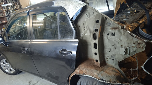 Доброго времечки. Вновь посвятим немного времени автомобильной сфере. Очередной авто марки Ниссан.И вновь это Тиида,приобретенная для приведения в достойное состояние.Конечно же все нюансы предыдущих ремонтов бегло были выявлены визуальным и техническим осмотром.В этом обзоре мы остановимся на наиболее "вкусном" аспекте данного автомобиля. Самым достойным было заднее крыло.Мы, конечно же,прекрасно видели лопнувшую шпаклёвку Так как не привыкать,думали,что всё убрать,выправить и сделать красиво...