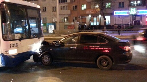В Уфе в ДТП «Ниссан» без водителя взял на таран троллейбус