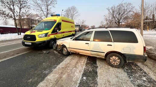 Скорую протаранил пьяный на Ниссане в Хабаровске Предварительно установлено, что 20.11. 2025 в 08:20 водитель автомобиля Ниссан АД , двигаясь по ул. Шелеста не уступил дорогу и допустил столкновение с автомобилем скорой медицинской помощи, который двигался с включенными звуковым и световыми сигналами. Автомобиль СМП направлялся на вызов, пациентов в транспорте не было...