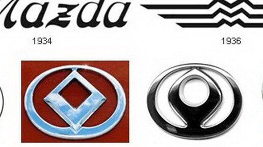 Эмблема Ниссан — это не просто название компании обведенное в круг, на самом деле круг раньше был красным символом восходящего солнца, а надпись была на синем фоне, символизирующим горизонт, откуда и появилось название культового Skyline, об истории которого я недавно писал. Все модели Skyline, вызывающие у нас трепет сердца, вместе с "наследником" GTR начинали свою историю вовсе не под брендом Nissan. 2. Mazda — самая нестабильная компания в плане эмблемы.