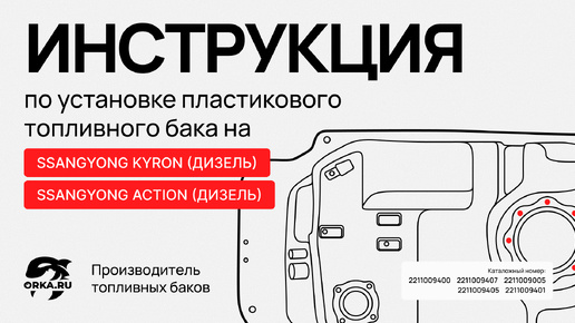 «Все права защищены, копирование без разрешения правообладателя запрещено» Компания ОРКА производит усиленные пластиковые топливные баки, устойчивые к коррозии и полностью совместимые с оригинальной геометрией автомобиля. Ниже — пошаговая инструкция по установке. Для работы понадобятся ключи на 8, 10, 13 и 14, WD-40 и немного аккуратности. Очищаем крепежи бака и обрабатываем WD-40. Ослабляем крепления бака, чтобы получить доступ к топливозаборнику и воздушным клапанам. Бак закреплён с одной стороны на стяжную ленту, с другой — на гайки...