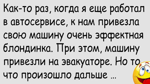 Одно время я в автосервисе работал. Работа там, конечно, не очень комфортная, но платили нормально. Поэтому я, собственно говоря, и работал там. А еще, там коллектив был неплохой. А самое главное, там клиенты попадались такие, что иной раз поднимали настроение на весь день всего одной фразой. Причем, как ни странно, мужики тоже чудили не хуже женщин. Но блондинки, особенно молодые и красивые, все равно круче всех оказывались. Так, одну дамочку привезли на эвакуаторе. Точнее, не её, а её машину. Сгрузили её дрындулет, и она спокойно пошла домой...