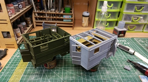 ДМС (denisssmodels) из Кирова показала сборку своих выпущенных на 3D-принтере фургонов для моделей ЗИС-44 образца 1943 года (серый на