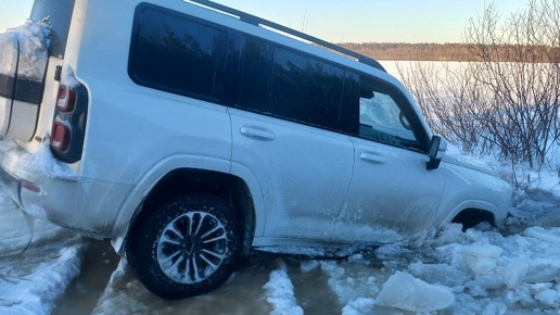 Под Нижним Тагилом рыбак едва утопил внедорожник на тонком льду