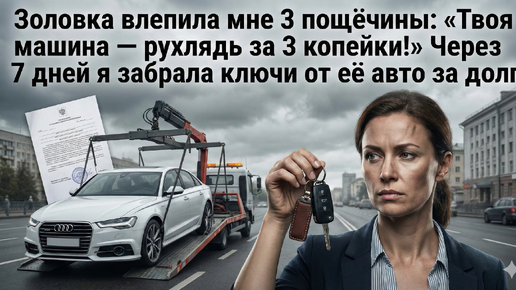 Золовка влепила мне 3 пощёчины: «Твоя машина-рухлядь за 3 копейки!» при адвокате. Через 7 дней я забрала ключи от её авто за долг в 400 тыс
