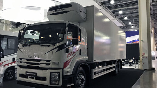 На прошедшей в Москве выставке коммерческого транспорта компания представила новые полуприцепы-рефрижераторы Формула 6х2 Компания продемонстрировала изотермический фургон на шасси Isuzu NQR12T L-H AMT 6x2. Полная масса автомобиля составляет 11 990 кг, грузоподъемность 7690 кг. Шасси оснащается четырехтактным дизельным двигателем Isuzu 4HK1 рабочим объемом 5,193 см3 и мощностью 190 л. с., а также 6-ступенчатой автоматической коробкой передач Isuzu MZZ6F Smoother. Объем топливного бака 140 л. Шасси оборудовано цельнометаллической двухдверной трехместной кабиной...