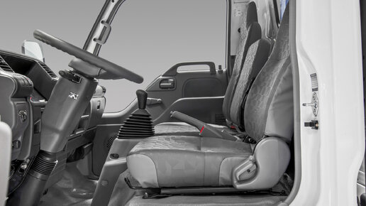 Из кабины Isuzu NQR 71 открывается отличный обзор: боковые стекла врезаются в дверь настолько глубоко, что удается отслеживать даже обстановку возле колес. Ширина внутреннего пространства - 1, 8 метра, которые с легкостью вмещают трех человек. Среднему пассажиру не очень удобно, потому что специально для него подголовник не предназначен - лишь ремень. Зато вперед можно откинуть секцию спинки, вследствие чего образовывается что-то типа стола.