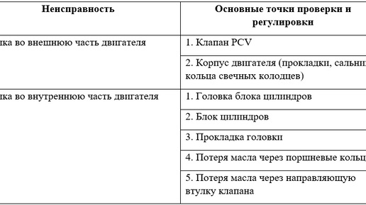 Классификация расхода масла по основным неисправностям: Масло, смазывающее стенки цилиндра не удаляется поршневыми кольцами, а попадает в камеру сгорания. Если дать двигателю полные обороты после прогрева, работы на холостых оборотах или частоте вращения около 1000 об/мин в течение 4 - 5 минут, в первые 30 - 60 секунд образуется большое количество выхлопных газов бело-фиолетового цвета, после чего их количество снижается. В этом случае, если дать двигателю полные обороты после работы на холостых...
