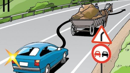 Разрешен ли обгон гужевой повозки? Казалось бы чего сложного? Сплошную пересекать запрещено. Но есть 13% людей, которые отвечают неверно. Сейчас разберемся откуда это заблуждение. Для начала уберем из внимания знак "Опасный поворот", так как на изображении видно, что обгон завершен до поворота. Остается знак "Обгон запрещен" и сплошная разметка. Исключения для знака "Обгон запрещен" мы помним: 3.20 «Обгон запрещен». Запрещается обгон всех транспортных средств, кроме тихоходных транспортных средств, гужевых повозок, велосипедов, мопедов и двухколесных мотоциклов без коляски...