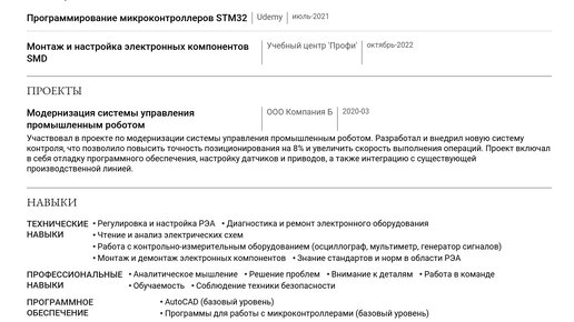 Пример резюме регулировщика РЭА 2025 - Как составить