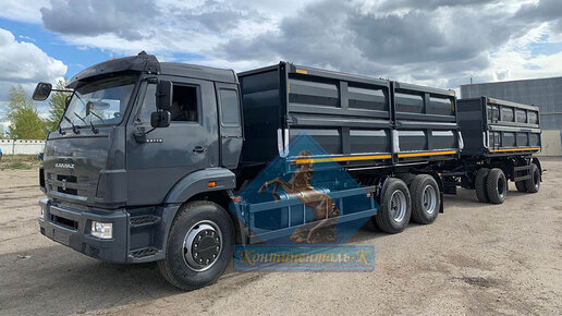 Разработали, изготовили и отдали Заказчику самосвальную сцепку на шасси Камаз 65115, покрашенную в корпоративный цвет Заказчика. Самосвал предназначен для перевозки различных сыпучих строительных, промышленных и сельскохозяйственных грузов. Платформа стальная, коробчатого типа. Разгрузка осуществляется на две боковые стороны. Объем самосвальной платформы на автомобиле 20, 4 куб.м. Объем самосвальной платформы прицепа 18 куб.м. Характеристика самосвала Камаз-65115: Колёсная формула 6х4, двигатель Cummins ISB6...