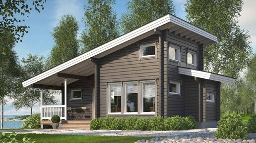 Баня с односкатной крышей с облицовкой из дерева.