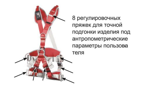 Конструктивные особенности: 1. Дополнительные элементы, позволяющие зафиксировать свободные концы ленты 2. Система интеграции рабочего сиденья в привязь 3...