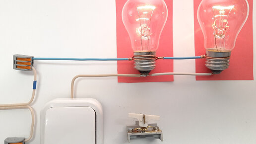 Одноклавишный выключатель позволяет управлять одно- или многоламповым светильником, а так же группами этих светильников. Состояния или режима всего два: включено или выключено. Устройство и принцип работы клавишных выключателей мы рассмотрели в предыдущей статье. Сегодня мы обойдёмся без принципиальных схем, так как количество проводов и их соединений минимально. В макетах, демонстрирующих способы соединения, для простоты я исключил так же и патроны для ламп. Получилось просто и наглядно. Макет...