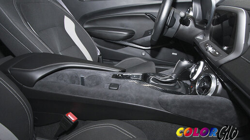 ПЕРЕТЯЖКА ДЕТАЛЕЙ САЛОНА CHEVROLET CAMARO АЛЬКАНТАРОЙ. НАКЛЕЙКА ПЛЕНКИ ПОД КАРБОН НА ПЛАСТИК ДВЕРЕЙ. АВТОАТЕЛЬЕ COLOR GLO RUSSIA Перетяжка центральной консоли алькантарой. Произвели перетяжку штатных пластиковых деталей центральной консоли алькантарой. Цвет - серый, артикул 9052. Своим клиентам мы предлагаем оригинальную Alcantara ®, которую получаем напрямую от производителя. Материал для перетяжки всегда есть на нашем складе в нужном количестве. Таким образом, мы никогда не задерживаем исполнение заказа из-за ожидания поставки материала для перетяжки...
