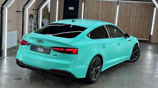 Оклейка кузова Audi A5 2.0 tdi пленкой цвета Тиффани, антихром и целый комплекс услуг