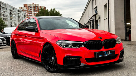 BMW 530i G30 — оклейка кузова пленкой цвета Ferrari, бронирование оптики, бронирование крыши, лобового и многое другое