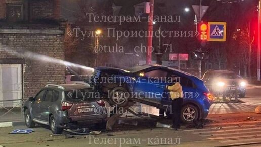 На улице Максима Горького в Туле вечером 4 декабря произошло жесткое ДТП с участием трех автомобилей. В результате сильного удара один из автомобилей, синий кроссовер, оказался на крыше другого транспортного средства, темного внедорожника. На опубликованных в Telegram-канале «Тула. Происшествия» кадрах видно, что автомобили получили серьезные повреждения. На месте аварии работают сотрудники МЧС и Госавтоинспекции. Также на фото можно увидеть отлетевшие детали кузова и деформированный дорожный знак, который лежит на земле...