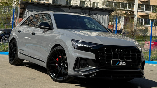 Оклейка Audi Q8 цветной полиуретановой пленкой цвета Nardo Grey, перешив руля и ручки КПП