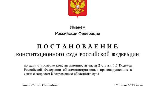 Конституционный суд РФ 18.07.2023 г. опубликовал разъяснения, что уплатившие штраф лица считаются подвергнутыми административному наказанию только после вступления постановления о его наложении в законную силу. Дело о проверке конституционности части 2 статьи 1.7 Кодекса Российской Федерации об административных правонарушениях рассмотрено в связи с запросом Костромского областного суда. Позиция Конституционного Суда: По общему правилу, согласно КоАП РФ постановление по делу об административном правонарушении подлежит исполнению с момента его вступления в законную силу...
