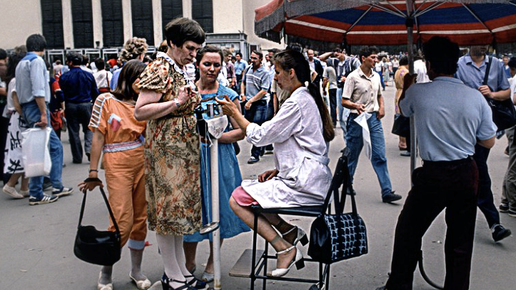 Когда мы говорим о жизни в восьмидесятых, мы часто совершаем ошибку, пытаясь свести всё к одному образу. Но 1980-й и, скажем, 1989-й это две разные страны. Десятилетие началось с олимпийского триумфа и «золотого застоя», а закончилось тектоническими сдвигами перестройки, кооперативами и талонами. В этой статье я хочу показать, жизнь советских людей на протяжении этих десяти лет. Помогут нам в этом уникальные снимки легендарного фотографа Криса Ниденталя. Обычные уличные весы простой и прибыльный бизнес эпохи первых кооперативов...